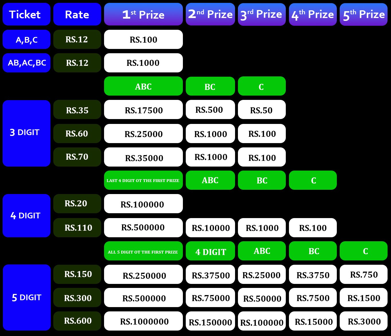 — 1st prize= Straight combination of 2rd, 3rd, 4th & 5th digit of the first prize